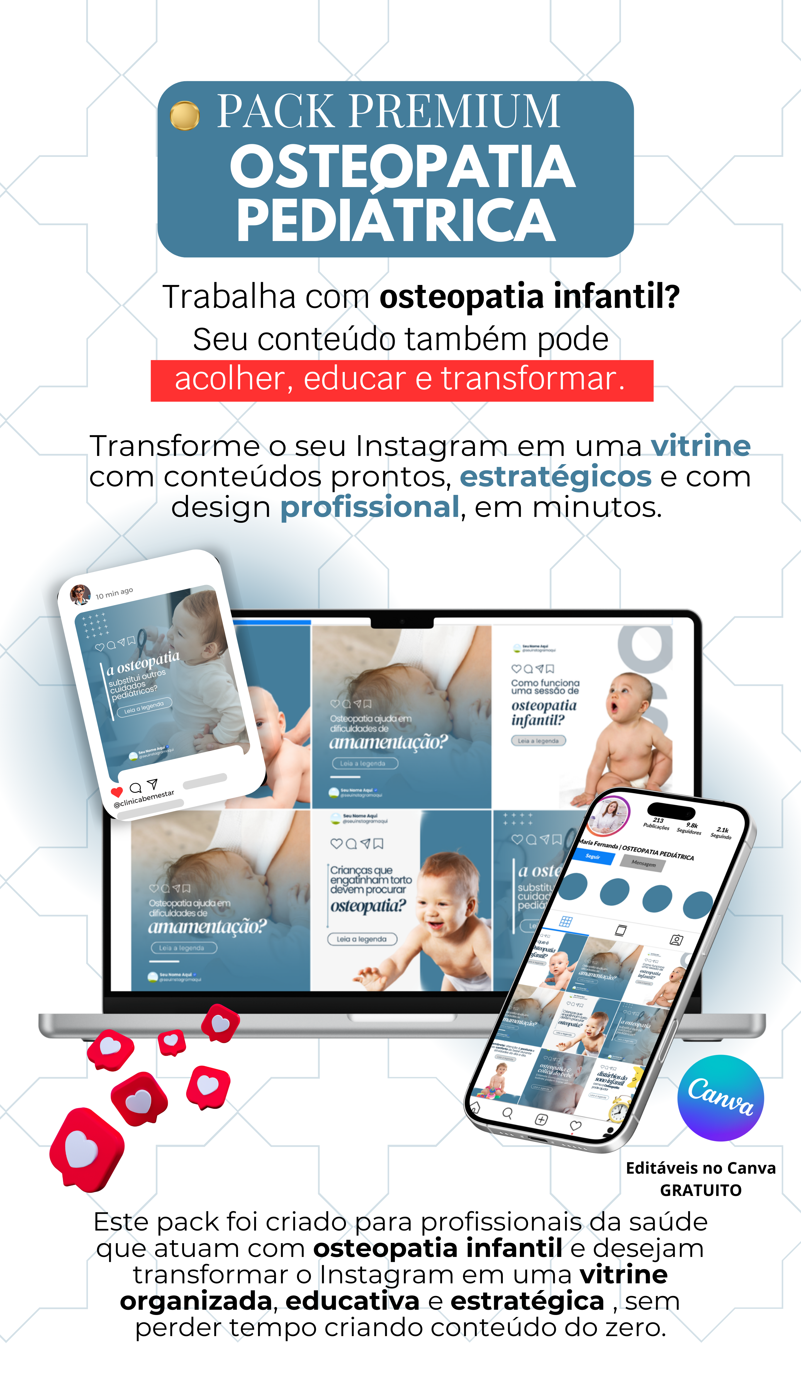 Com o Packde Posts Osteopatia Pediátrica você vai conseguir: