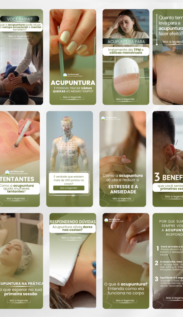 VĂdeos pensados para gerar visualizaçÔes, salvamentos e conexĂ”es reais com quem precisa da sua acupuntura.