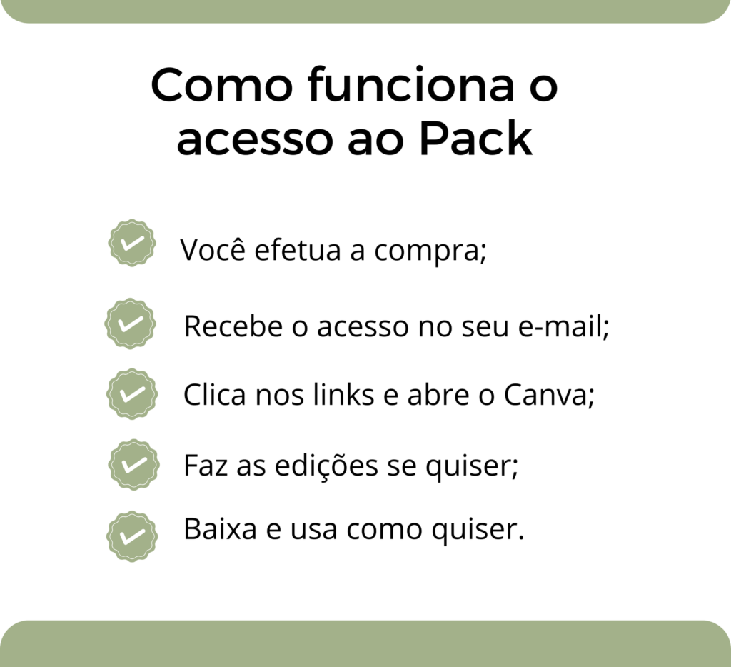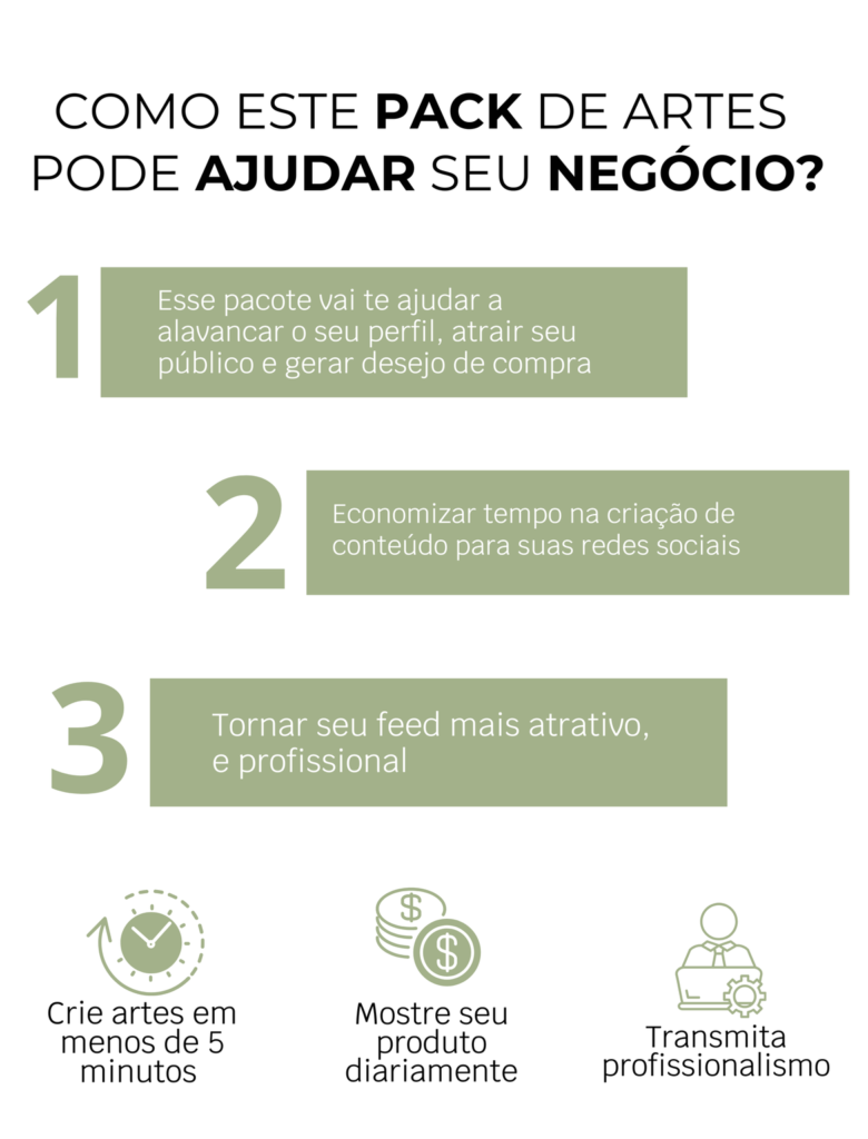 Não perca mais tempo tentando criar seus próprios designs. Com nosso pack de artes editáveis no Canva, você pode ter um perfil no Instagram profissional e atraente em questão de minutos. Adquira agora e veja a diferença em suas vendas!